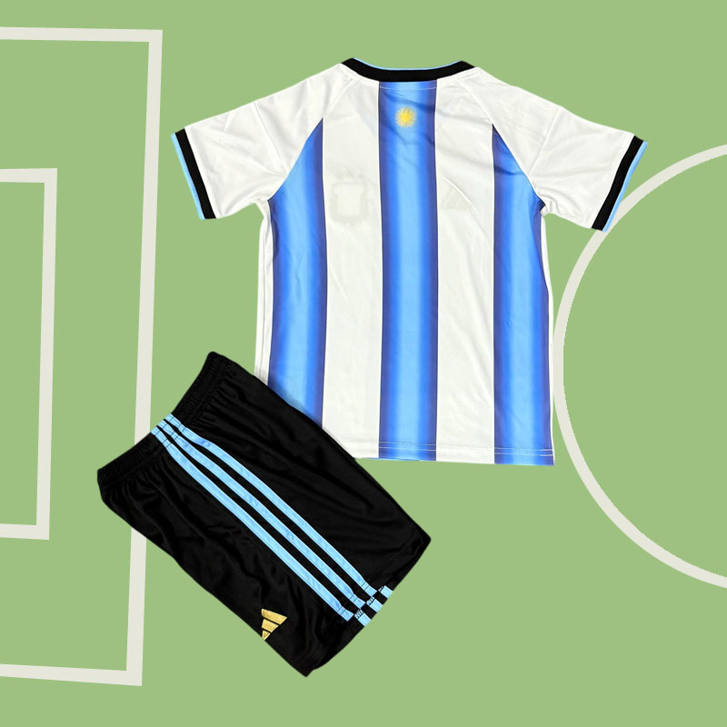 Detta Argentina fotbollströja barn är tillverkat i lätt och ventilerande material som ger hög komfort både på planen och till vardags. Setet inkluderar matchtröja och shorts i matchande stil och kan personanpassas med eget namn och nummer, vilket gör den extra speciell.