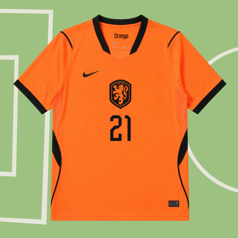 Ja, du kan enkelt anpassa din Nederländerna landslagströja med eget namn eller välja populära spelare som F. De Jong 21.