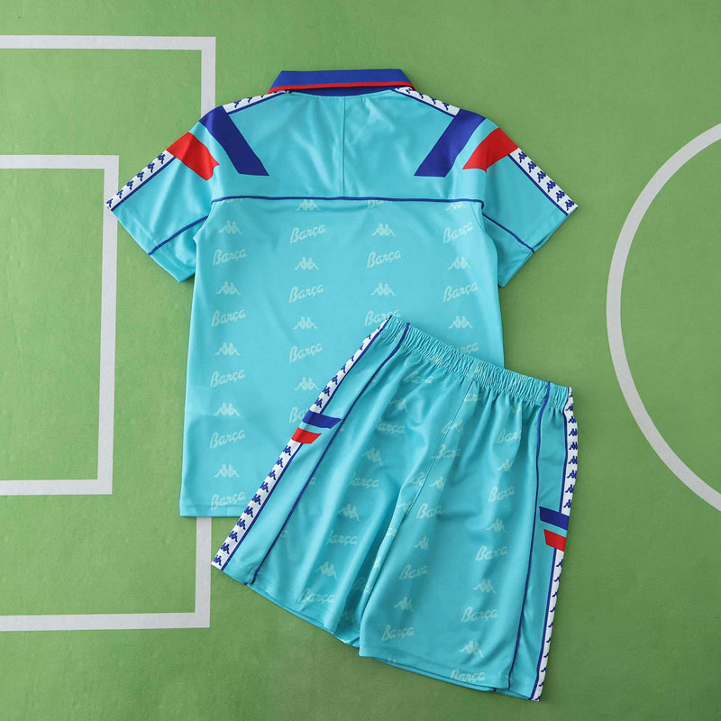 Bli först med att recensera ”FC Barcelona 92/95 bortaställ barn – retro fotbollströja och shorts”