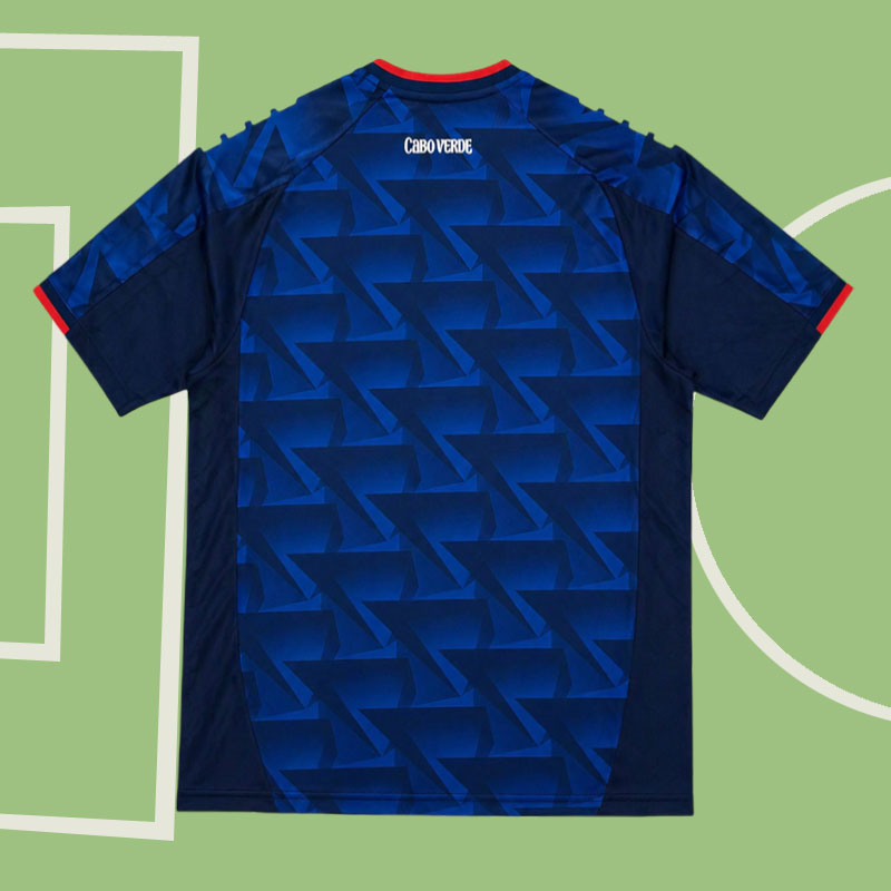 Skriv historia tillsammans med ”Tubarões Azuis”! Denna snygga blå fotbollströja är framtagen för Cape Verde allra första framträdande i VM 2026. Designen präglas av en djup blå färg med ett subtilt grafiskt mönster över bröstet som ger tröjan en modern och unik känsla. Kontrastrika röda detaljer vid kragen och ärmsluten, tillsammans med eleganta vita ränder över axlarna, skapar en kraftfull look som representerar nationens stolthet.