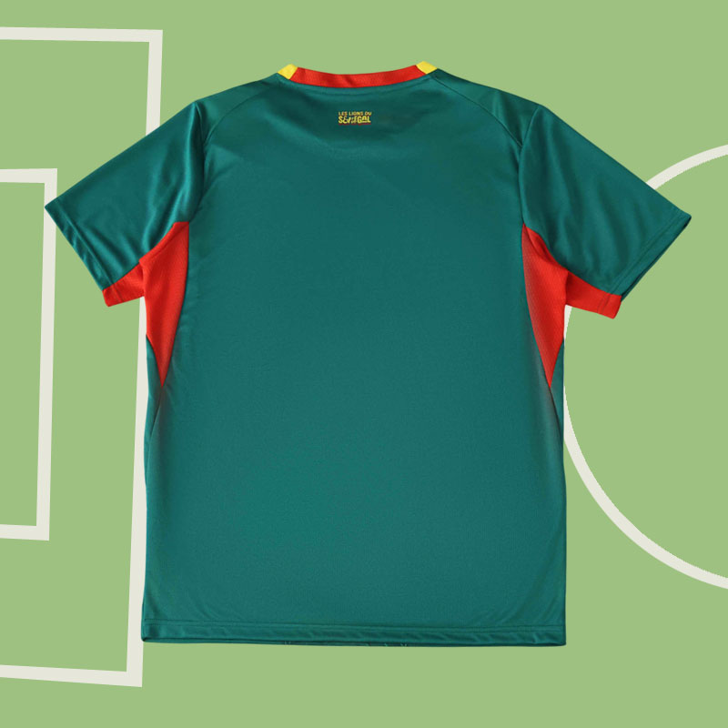 Senegal VM 2026 bortatröja – grön herr fotbollströja för 2026 FIFA World Cup kombinerar en djup grön bas med gula och röda detaljer som hämtar inspiration från Senegals välkända färger. Den vertikala mönsterdesignen på framsidan är skapad med influenser från traditionellt senegalesiskt hantverk och ger tröjan en unik struktur och karaktär som verkligen sticker ut bland andra VM 2026 fotbollströjor.