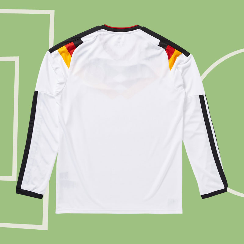 Långärmad Tyskland hemmatröja – VM 2026 herr fotbollströja ger dig den perfekta looken för att stötta Tyskland i jakten på ännu en VM-titel. Den vita Tyskland fotbollströja kombinerar modern design med stolta färger i svart, rött och guld, så du kan visa din passion för Die Mannschaft både på läktaren och på planen.